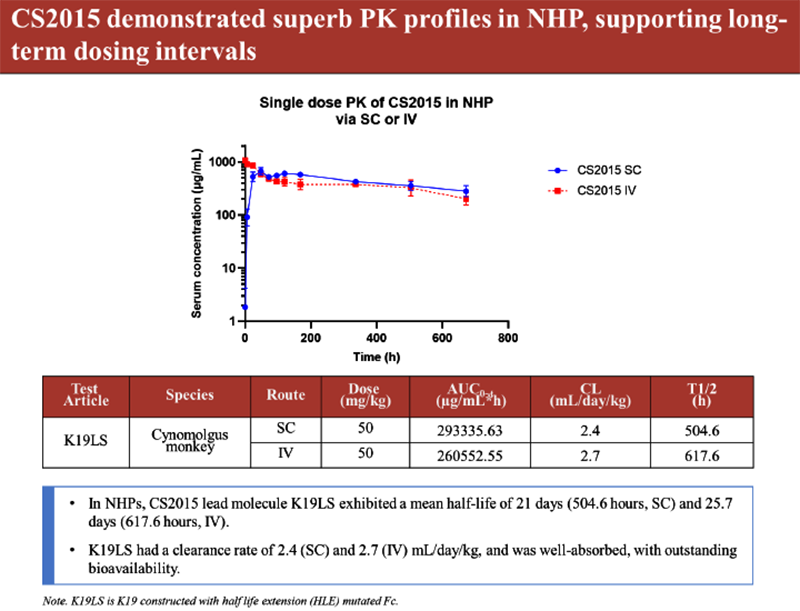 CS2015在非人灵长类动物(NHP)中展现出优异的PK特征,支持长期给药间隔: