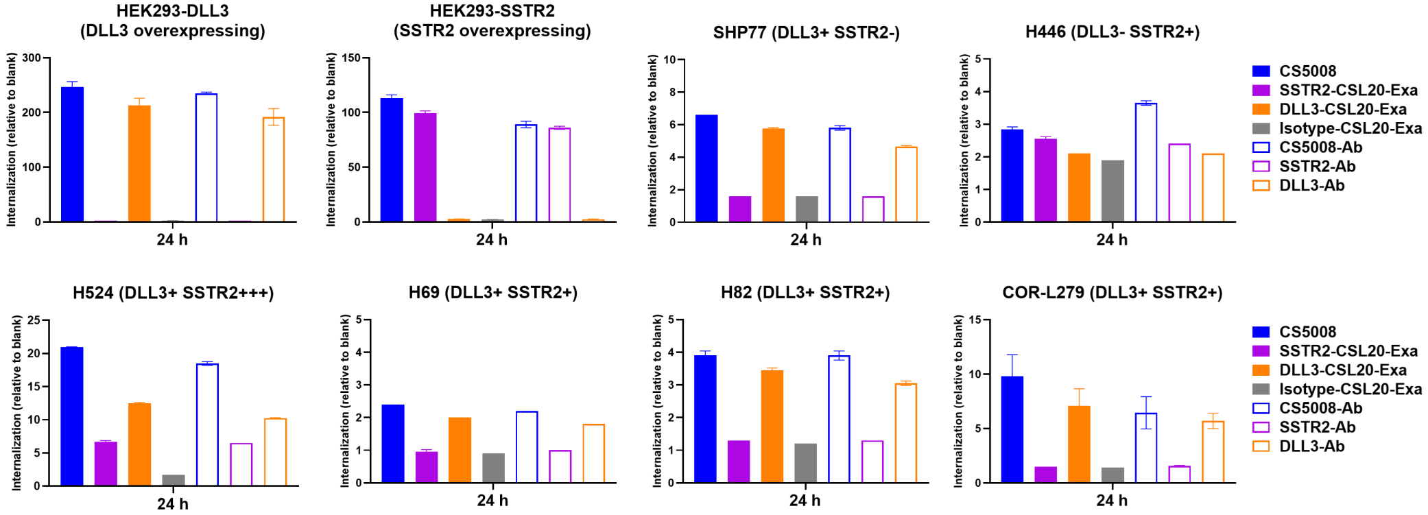 CS5008在SSTR2和/或DLL3阳性的肿瘤细胞上触发了快速且深度的内吞作用: